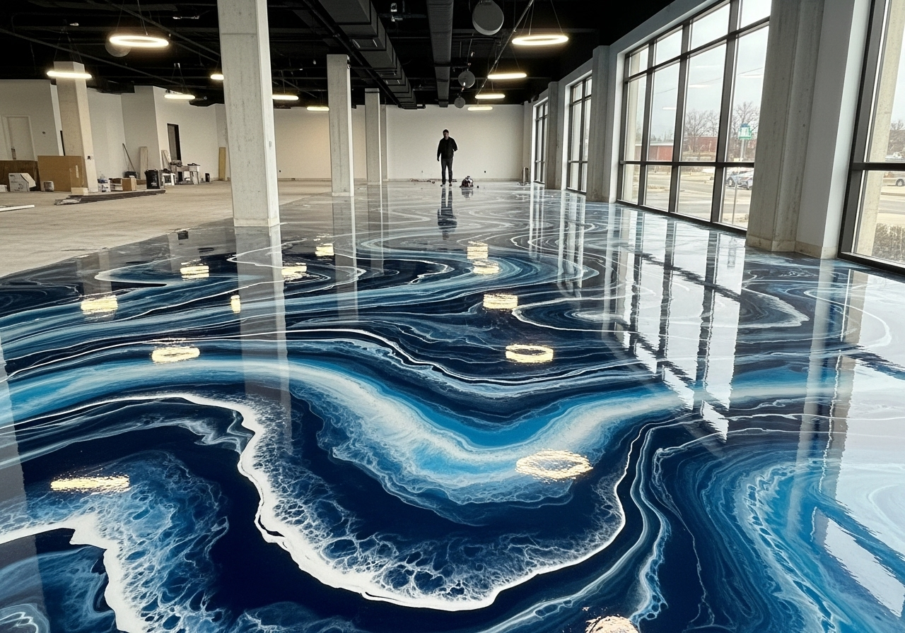 LuxeResinFloors brings your vision to life with our Immersive Art Resin Floors. These bespoke designs transform any space into a dynamic, flowing masterpiece, utilizing custom color blends and expert techniques to create breathtaking, three-dimensional effects. Ideal for showrooms, luxury retail, or unique residential statements, these high-gloss floors provide unparalleled visual depth and a truly unforgettable, high-end experience that captivates every visitor.